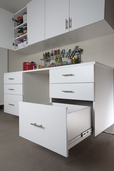 Off the floors, onto the walls and out of the way are the results of our garage organization systems. With our quality garage storage cabinets, workbenches, shelves, wall storage, and overhead storage racks…our consultants will provide the perfect solution for your garage.